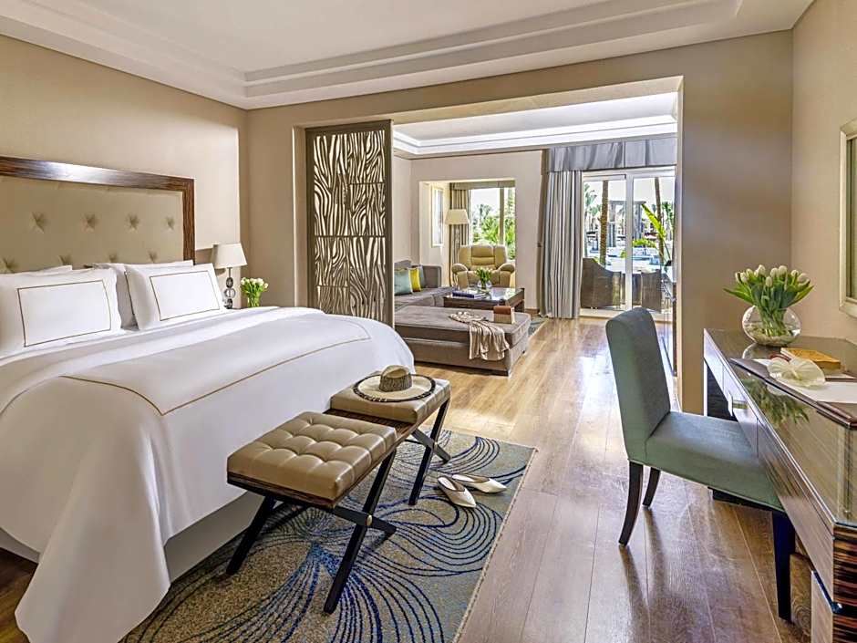 Elegant interiors, a bedroom with a king bed, and a sitting area with a sofa in a convenient design, as well as pool or garden views, appeal to all guests desiring a mesmerizing holiday experience in a Junior Suite.