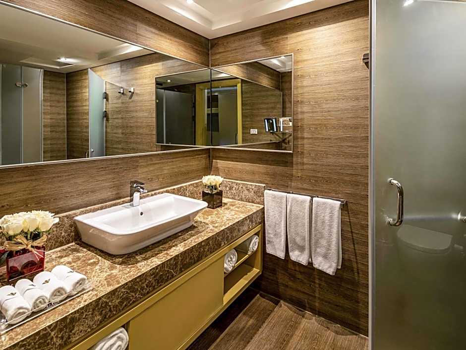 The Superior Suite Aqua located second line at Seagate Aqua, ground floor with a garden view, terrace. Features a King and Twin beds rooms, living area, complimentary Mini Bar (water, soft drinks and beer refilled daily free of charge) Tea and coffee making facilities, bathrobes and slippers. 3 LCD IPTV screens, 2 bathrooms, 2 safe boxes.